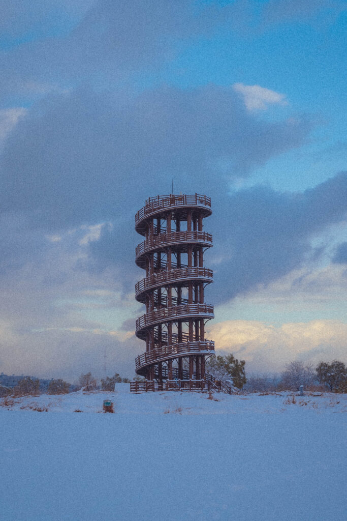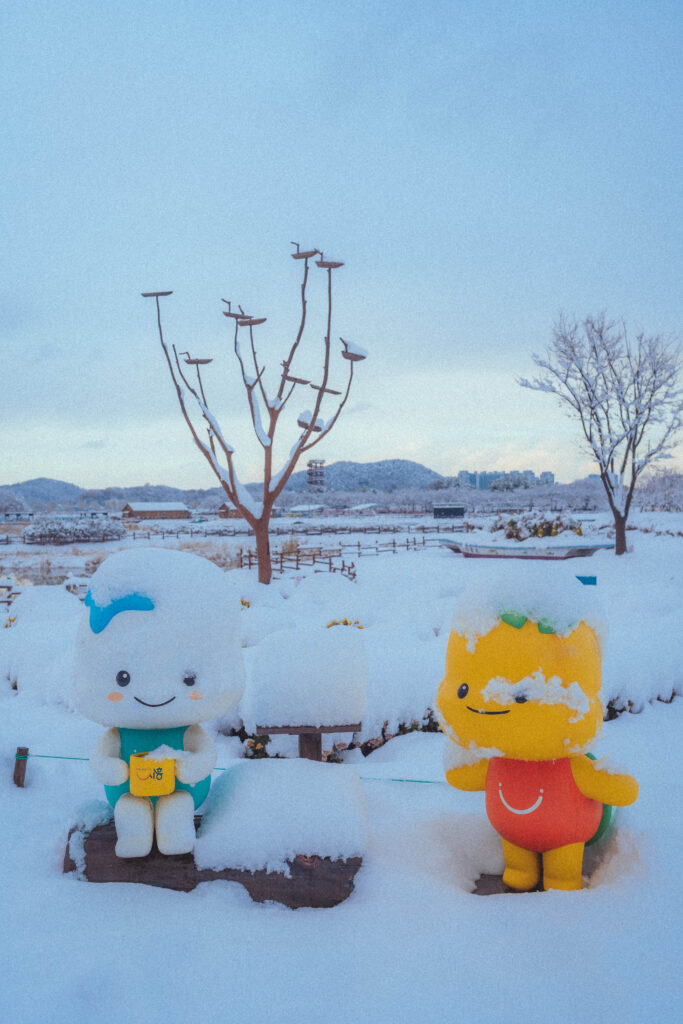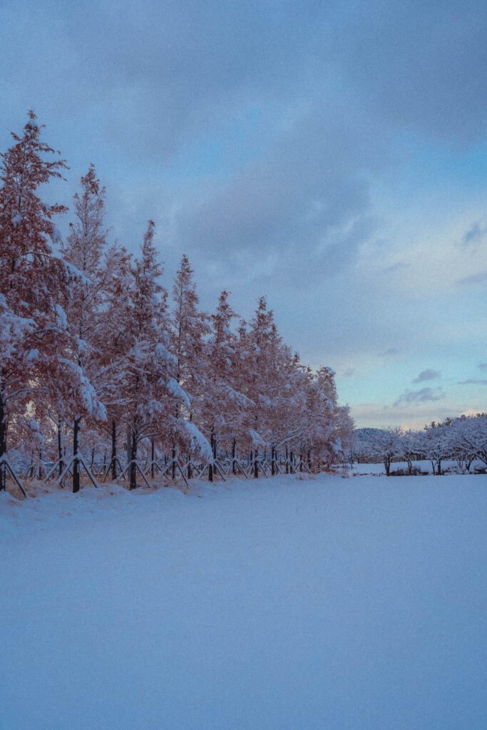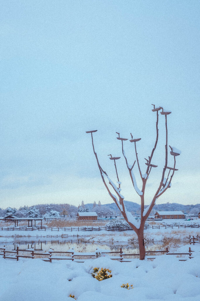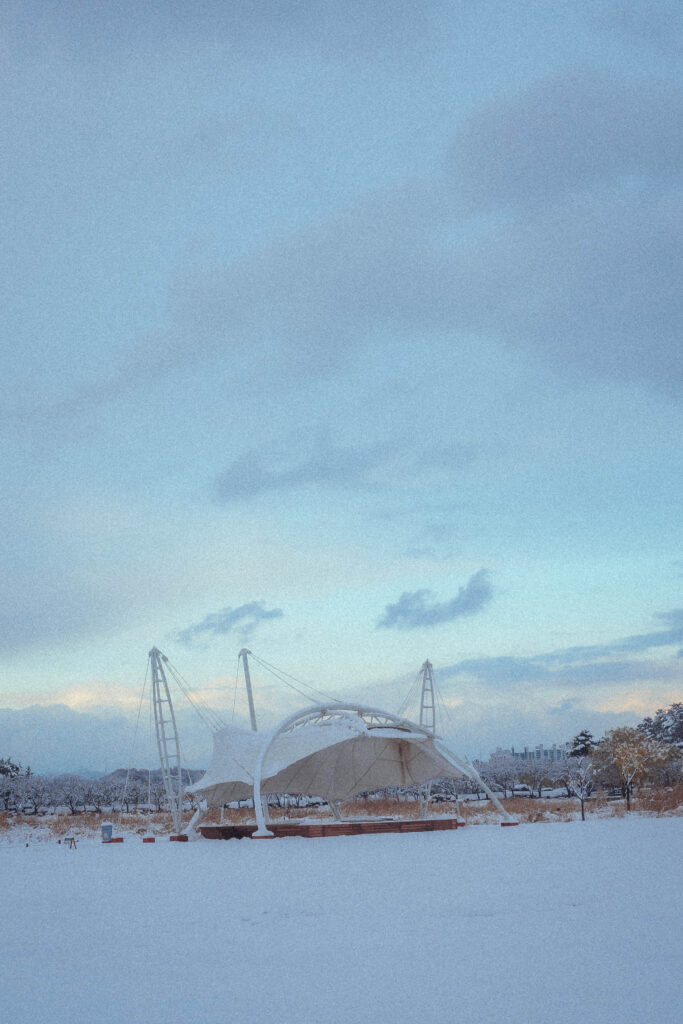 산책로를 따라 걷다 보면 시선은 자연스럽게 흔들전망대로 향한다. 눈 덮인 평야 한가운데 우뚝 선 전망대는 이곳의 상징 랜드마크로 위로 올라갈수록 시야가 트이며, 공원 전체가 하나의 설경 파노라마처럼 펼쳐진다. 구불구불 이어진 구조와 하얀 풍경이 겹쳐지면, 마치 북유럽이나 일본 비에이를 연상시키는 장면이 만들어진다. 그래서 사람들은 이곳을 ‘한국의 삿포로, 비에이를 닮은 풍경’이라고 부른다.